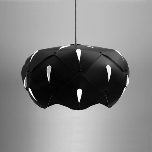 This black Cynara Lampshade is made from cardboard recycled. The package includes lampshade only. The electrical system is not supplied. The lampshade is easy to assemble without any tools. Directions are included. Approximate diameter when assembled is 16″ (41 cm).